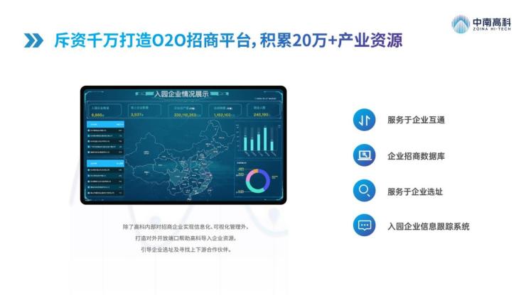 中南高科—服务中国制造业的超级平台,招商结果是为了提高产业凝聚力,以运营服务塑造品牌硬实力,良好的产业运营是企业发展的助推器,为刘集镇产业发展谋划方向,筛选企业产业产值是否符合片区定位,对接优质企业政策奖励,一对一服务,为中小企业提供技术培育服务、资格认定服务。在园区交付前一站式服务,协助办理企业的发改备案、入园审批、工商注册,以及环评、安评、消防验收等工作。